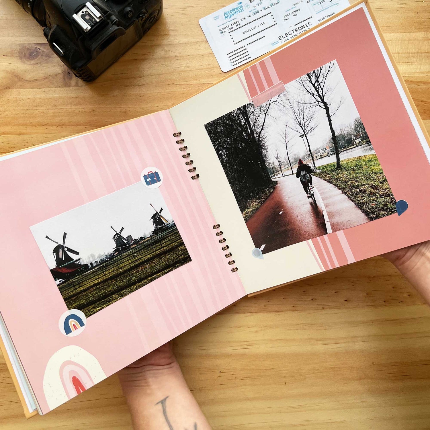 Este álbum está diseñado para que colecciones tus mejores aventuras y viajes, cada página se pensó para lucir tus mejores fotos de esos días que fuiste tan feliz. Todas las historias, los momentos más memorables y cada lugar que visitaste, merecen quedar plasmados en este álbum de fotos para viajes.